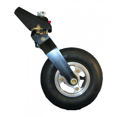 The T-8LD tail wheel utilizes a dual fork configuration and incorporates a geometric release mechanism that allows the wheel to caster after reaching a steered angle of 40 degrees. The WHLTW37 wheel used on the WHLT-8LD has a .625 precision sealed ball bearing which is rigorously tested and designed to resist bearing fatigue providing a long bearing life. The arms and wings of the tail wheel fork assembly are composed of 4130 which is heat treated to a Rockwell 38-43 to ensure strength and are irridited to prevent corrosion. The tail wheel base and forks are cast and then black anodized to prevent corrosion as well. The wheel halves are die cast aluminum for light weight and superior strength. The T-8LD features split rims for ease of mounting and dismounting its 200x50 (8"x2") tire and tube assembly. The tail wheel assembly is both steerable and full swiveling and provides easy installation with variant spring tension. This wheel has been designed to release with light spring tension and can accommodate either a 1.25 or 1.50 inch wide spring. When a 1.50 inch spring is used, a .25 inch spacer should be used between the base and the spring. The assembly should be mounted on the flat spring so that the pivoting axle is as close to vertical as possible when the plane is loaded. All assembly bushings are made of oil impregnated brass so no lubrication is needed during the life of the tail wheel. In addition, the shaft has been redesigned to .625 for added strength and durability. |