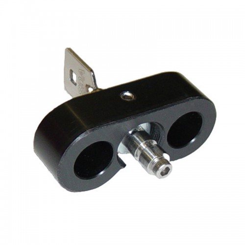This simple locking device is designed to disable the battery from the electrical system which cuts off all power to the aircraft unattended many pilots disconnect the battery and lock the panel door. However, many panel locks are easy to pick and pry open. If a thief is able to unlock the panel door, it is simple to reconnect the battery. Then all on would have to do is go inside the plane through the emergency door, which is often left unlocked with a key, the engine can easily be started and the plane can be flown away. The batter lock is constructed using a tough space age plastic polymer and a seven pin round ball bearing lock that is impossible to pick which in turn prevents aircraft theft and increases security. |