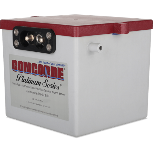 The RG-400E/13 is a Concorde Platinum Series Aircraft Battery. The Platinum Series is comprised of premium hand made AGM Aircraft Batteries with excess power for many applications.