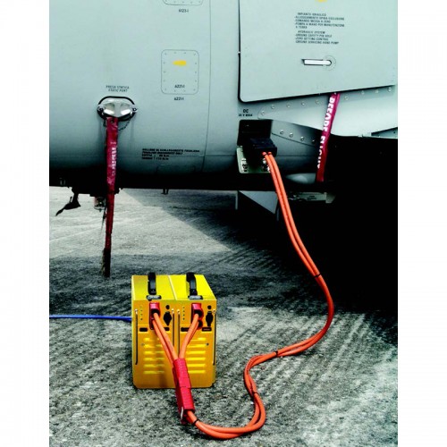 Produced in partnership with Powervamp, the PS100 is a solid state hand-portable power supply delivering a maximum of 100A at a pre-set voltage of 28V DC for avionics use. |