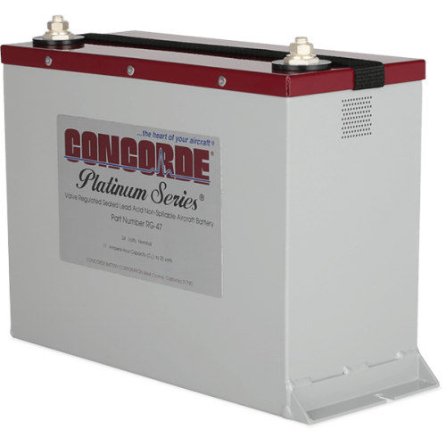 Concorde recombinant gas (RG® Series) valve regulated lead acid (VRLA) batteries for engine starting. Constructed with Concorde’s proprietary PolyGuard™ Microporous Polyethylene Separator, shielding the positive plates against shorting, shock or vibration. No other manufacturer offers this dual layer insulation protection f eature.PMA/TSO